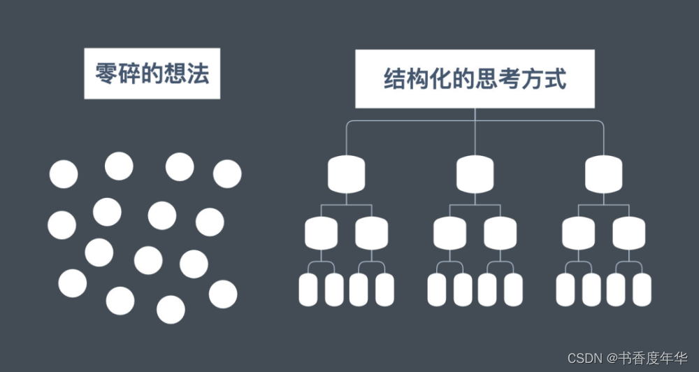 思想、概念的外在结构化表示,伴随着的是内在曾经历过的无数次的抽象概括、改造重组。作者面对着大量非结构化或结构错乱的元数据,通过对各元数据的分类概括、抽象总结,形成一颗有序思想树。这些元数据就是枝叶,而最终形成的树根就是主要思想、概括总结。