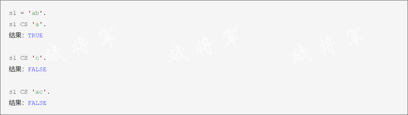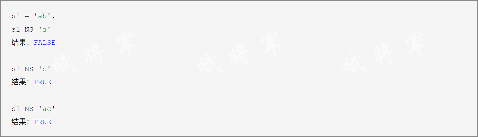 S1至少包含S2中的任意一个字符(区分大小写,比较尾部空格)