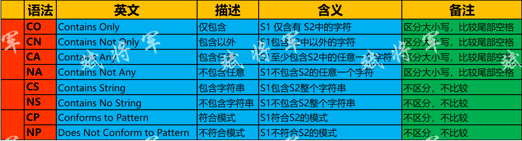 本篇文档将通过举例,解析字符的比较运算符之间的用法和区别,涉及到的操作符:CO|CN|CA|NA|CS|NS|CP|NP