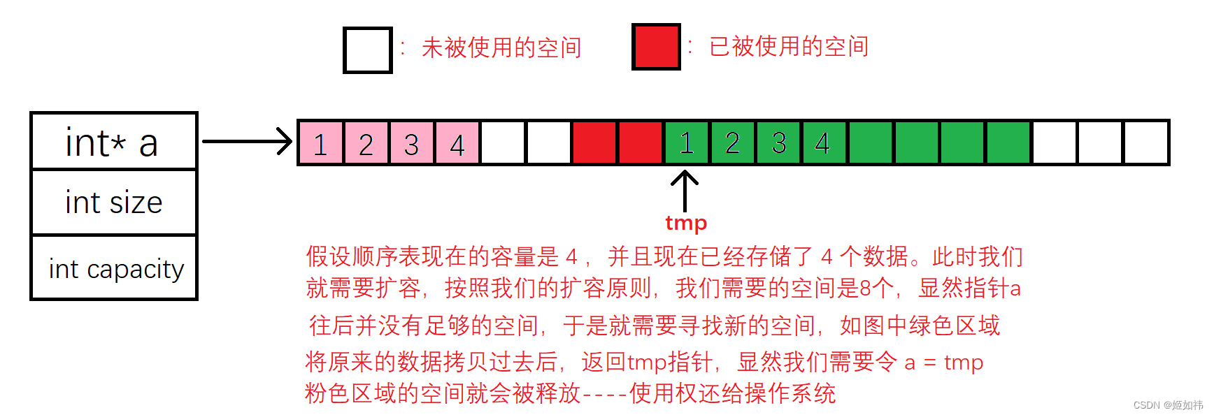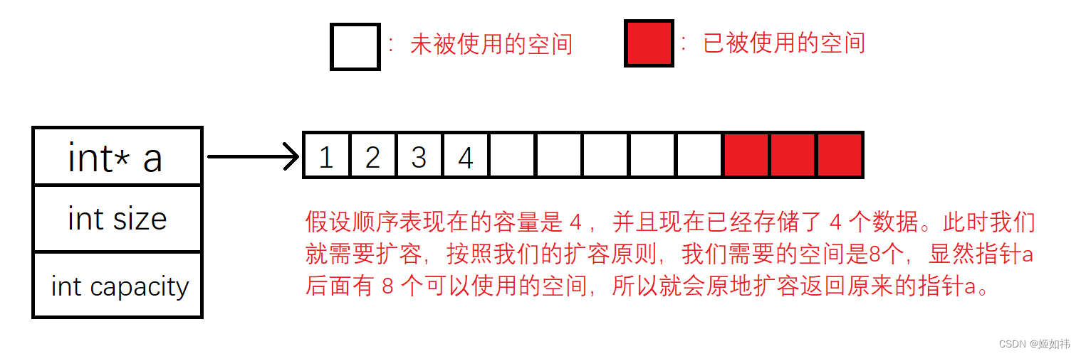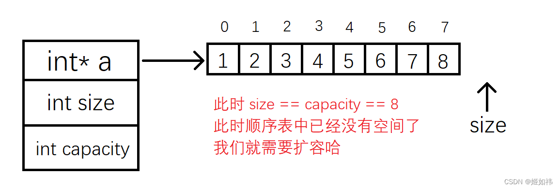 我们往顺序表里面插数据的时候,显然可能存在没有剩余空间的时候。这时我们就需要扩容啦。