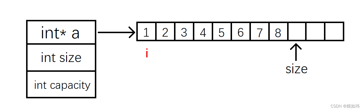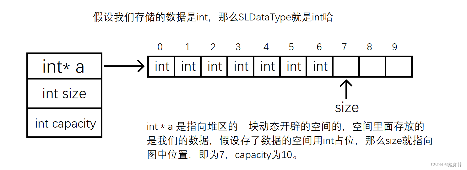 {SLDataType* a;int size; // 有效数据个数int capacity; // 空间容量