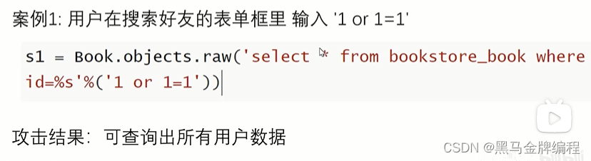 SQL注入 使用原生语句时小心SQL注入 定义:用户通过数据上传,将恶意SQL语句提交给服务器,从而达到攻击效果