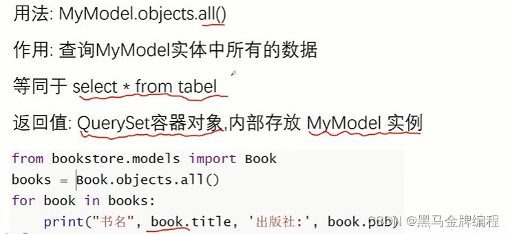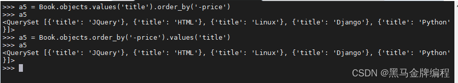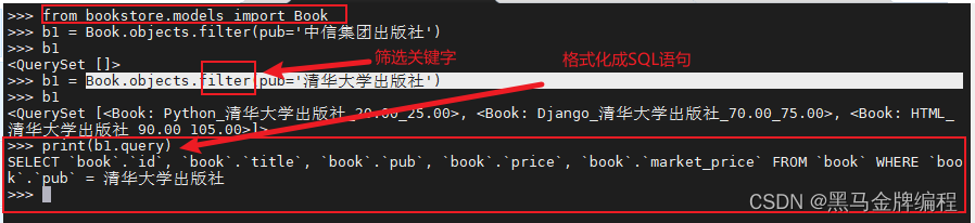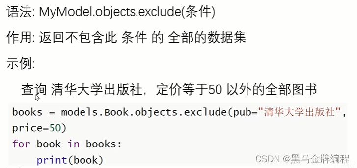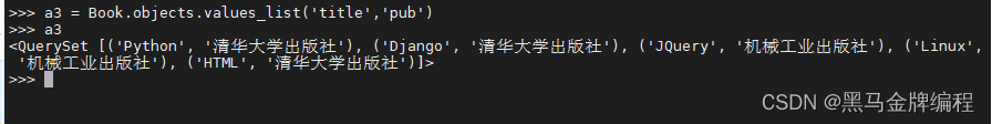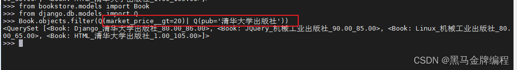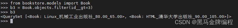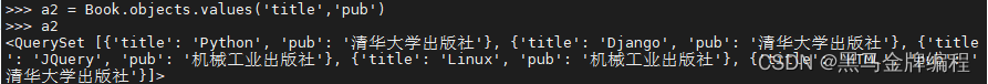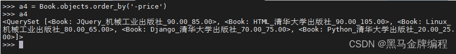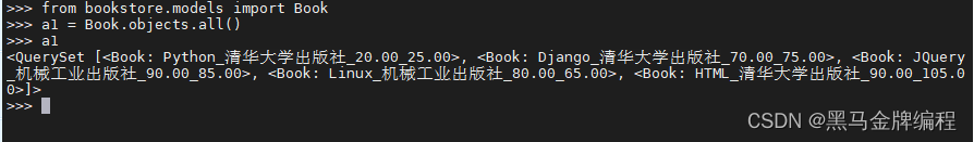 案例2:格式化输出 可以在模型类中定义__str__方法,自定义QuerySet中的输出格式 例如 在Book模型类下定义如下: