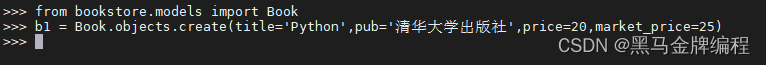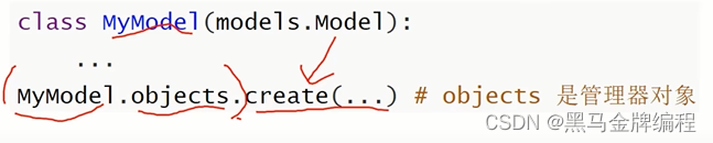 Django ORM使用一种直观的方式把数据库表中的数据表示成python对象 创建数据中每一条记录就是创建一个数据对象 方案1 MyModel.objects.create(属性1=值1,属性2=值1,...)——属性即字段 成功:返回创建好的实体对象 失败:抛出异常 代码示例
