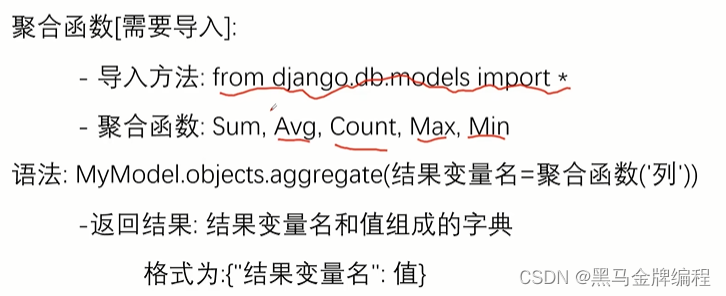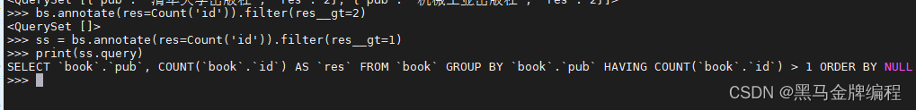 分组聚合 分组聚合是通过计算查询结果中每一个对象所关联的对象集合,从而得出总计值(也可以是平均值或总和),即为查询集的每一项生成聚合。