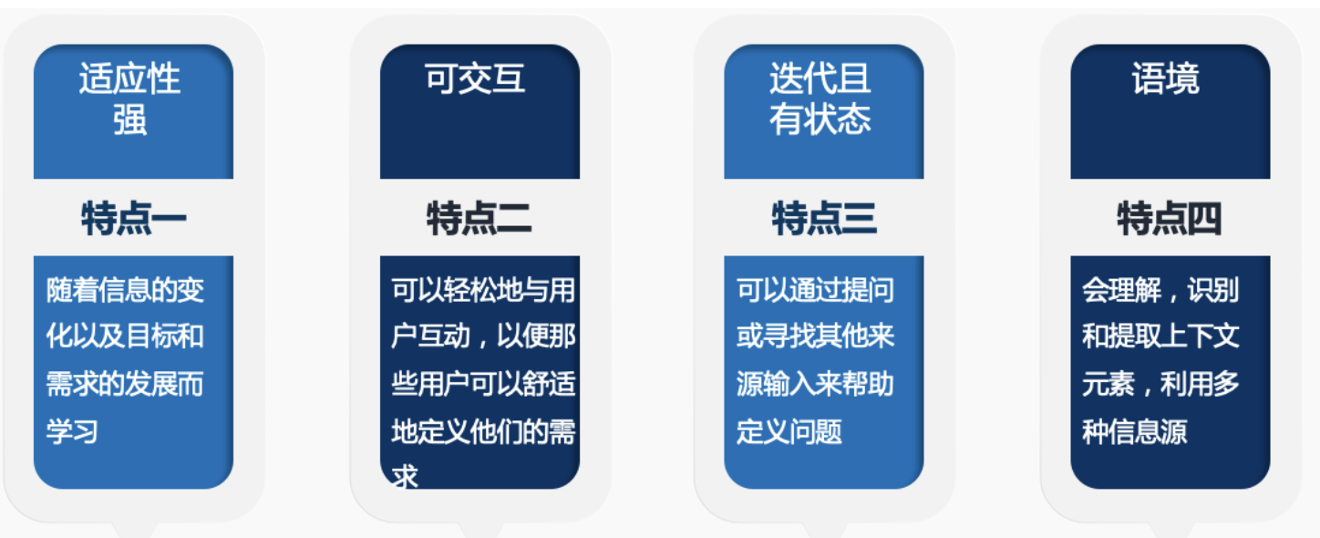 目前我们正在进入认知智能阶段。认知智能(计算)是技术及产品的中枢神经系统,其感知人、物、事件、环境,并进行数据分析与决策。认知智能的关键特征是对人类智能的模拟、对模糊数据与问题的高效处理、对不确定数据与问题的高效处理。