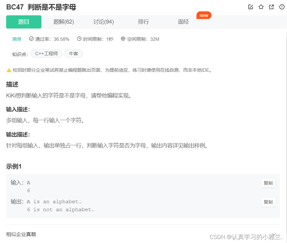 当然,也可以用库函数,专门用来判断是不是字母——isalpha