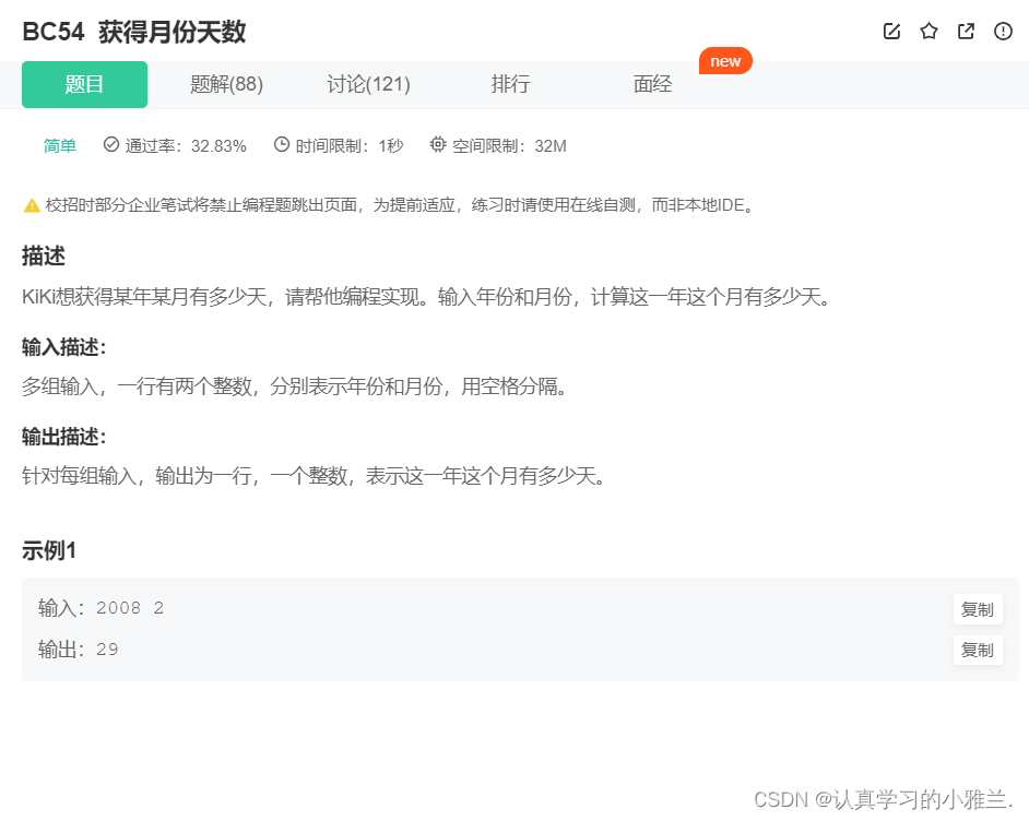2. 判断闰年,如果是闰年,2月多一天,其他都正常。