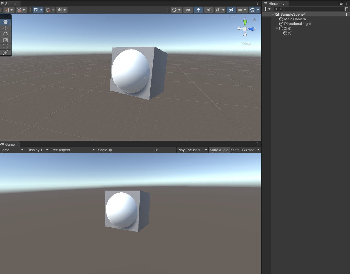 首先在场景中,创建一个正方体(灯座),球体(作为灯),把其放置成红绿灯结构。