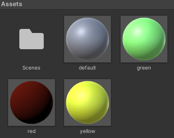创建四个材质球,基础色分别赋为灰色,红色,黄色,绿色。其中灰色作为灯座颜色,红、黄、绿材质球作为红绿灯变换的材质。