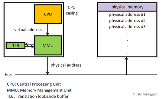 MMU负责指令中的虚拟地址到物理内存的物理地址的转换,并提供硬件机制的内存访问权限检查。