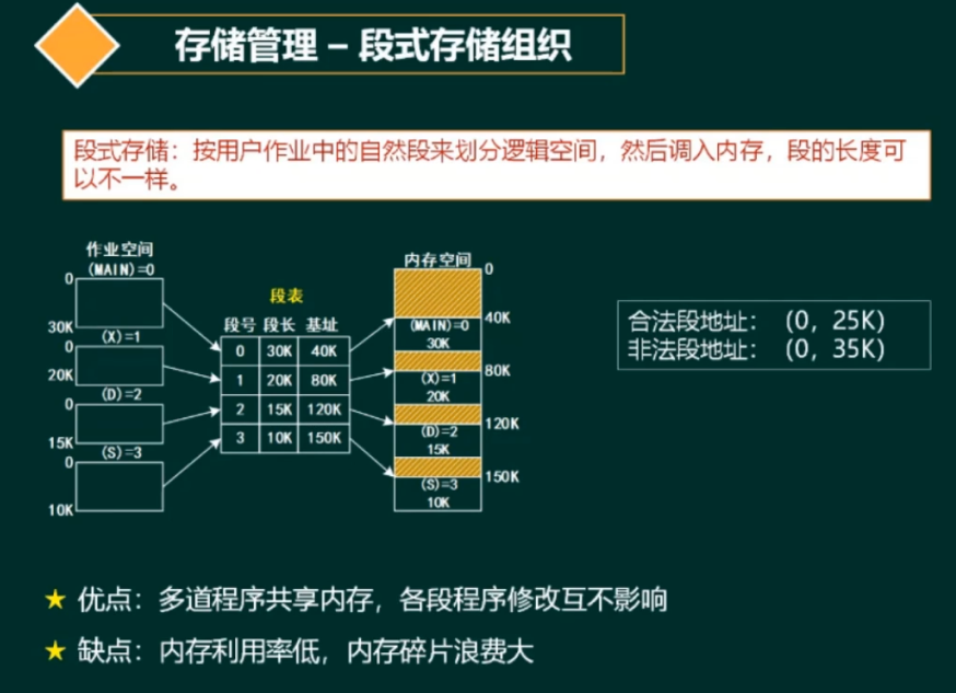 段式管理(segmentation),是指把一个程序分成若干个不等长的段(segment)进行存储,每个段的长度称为段长,每个段都是一个逻辑实体(logical entity),程序员需要知道并使用它。它的产生是与程序的模块化直接有关的。不同的模块,放到不到的段中,而页表是根据固定长度的页长来划分程序空间的。