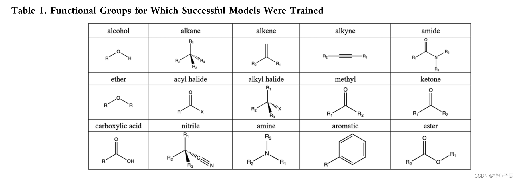 在本研究中,我们研究了卷积神经网络(CNNs)的实现,以识别存在于FTIR光谱中的官能团。通过限制光谱预处理,我们探索了一种最小化的方法,允许网络学习光谱模式,以成功识别15个最常见的有机官能团(表1)。