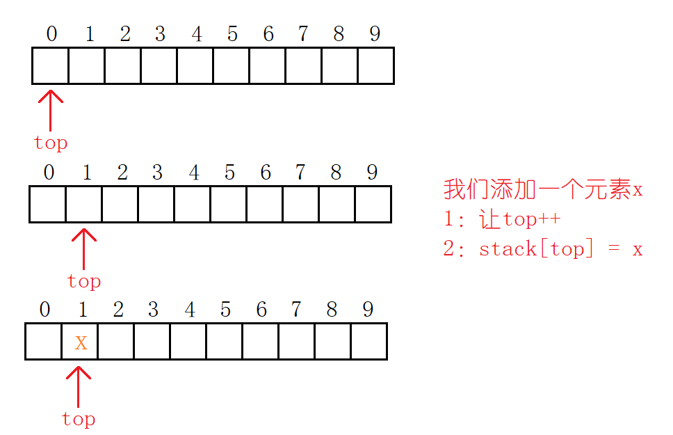 {stack[++top] = x;