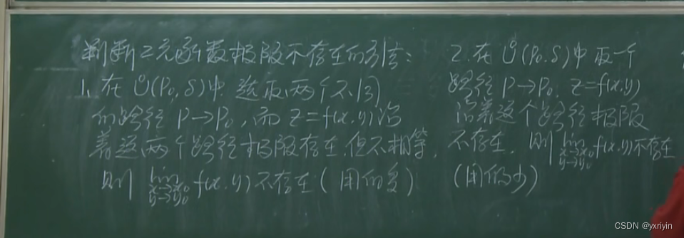 判断二元函数极限不存在的方法: