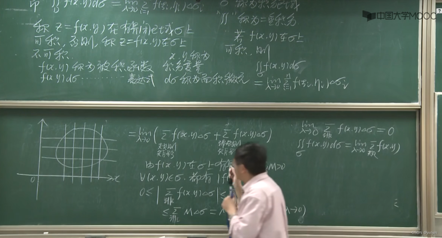 就是对于区域D下的面积,和每个微元的函数值的积分,最终形成体积的概念。就是求和公式: