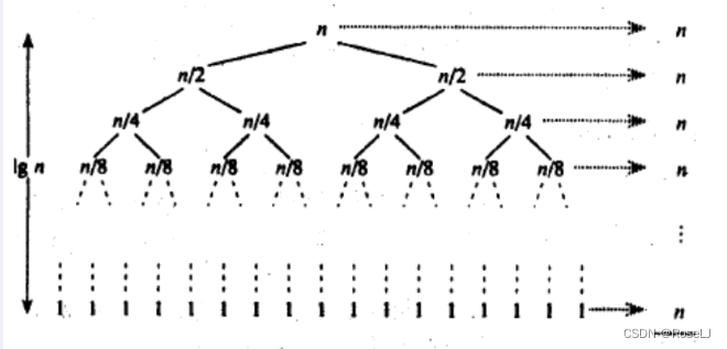 嵌套过程类似于二叉树高度为logN,每层约有N个数