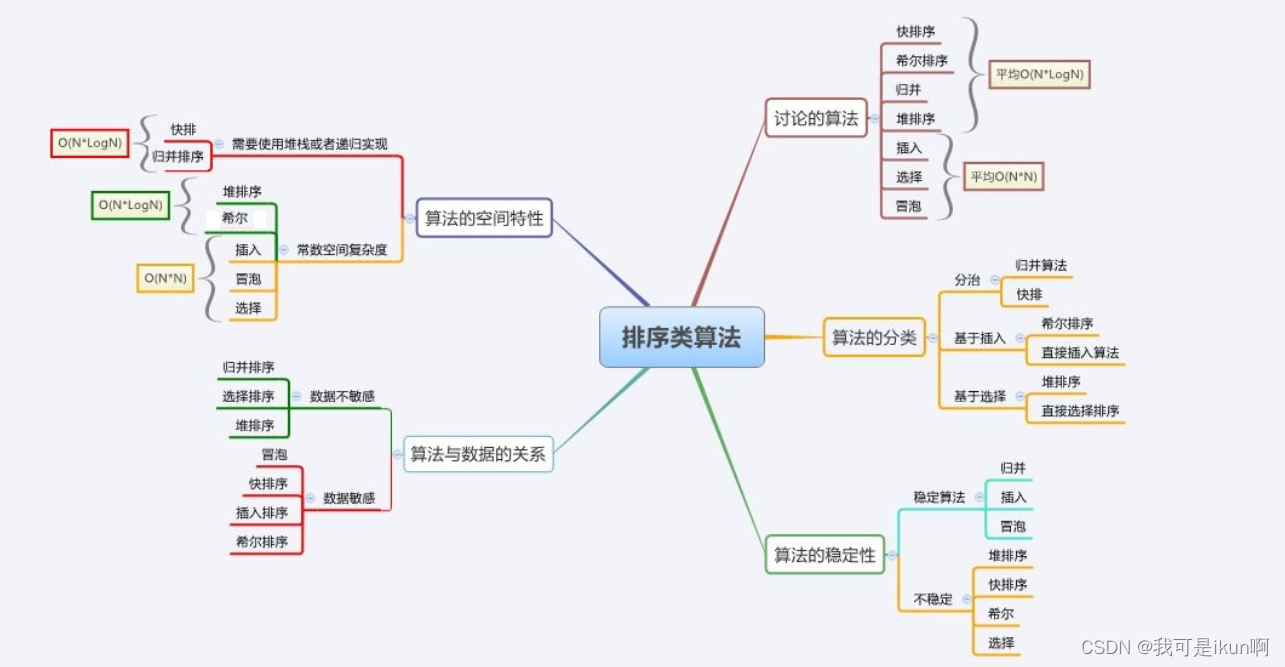| 排序方法 | 最好 | 平均 | 最坏 | 空间复杂度 | 稳定性 |