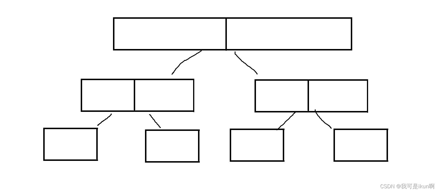 每次将数据均分为两组,直不可再分;每次再将两组数据进行合并,如下图所示: