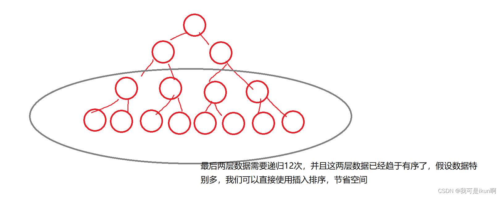 //再次优化private static void insertSort2(int[] array,int left,int right) {for (int i = left+1; i <= right; i++) {int tmp = array[i];int j = i-1;for (; j >= left ; j--) {if(array[j] > tmp) {array[j+1] = array[j];}else {break;}}array[j+1] = tmp;}}