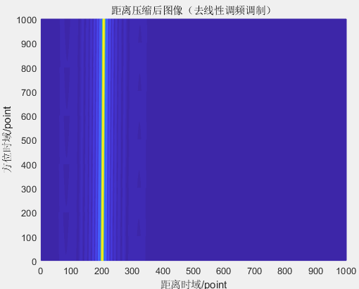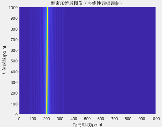 下图分别为距离脉压后的图像以及最终距离多普勒图像。