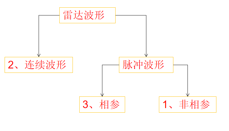 脉冲波形主要有四个基本特征:载频(就是雷达发射机产生大功率电磁波信号在未受调制前的频率)、脉冲宽度(脉冲的持续时间)、脉冲重复频率(每秒钟发射脉冲的个数)、脉冲调制参数(载波相位或频率调制参数)。固定频脉冲信号主要涉及前3个特征;线性调频脉冲信号是对载波的频率进行线性调制,因此在存在调频率的脉冲调制参数,其与脉宽共同决定脉冲信号带宽;捷变频雷达与线性调频率雷达主要区别在于捷变频雷达每个载频中心是随机捷变的,而一般的线性调频脉冲雷达载频中心是固定的;伪随机相位编码雷达的对载波相位进行伪随机编码,增加脉冲信号带宽,进而提高距离分辨率。本节主要围绕多目标分辨对不同体制的雷达进行分析: