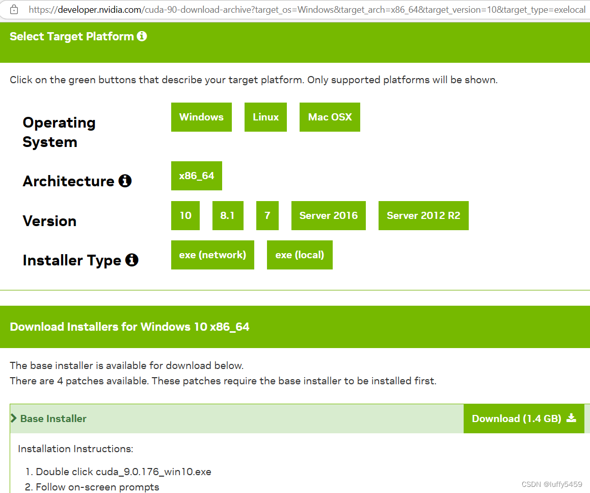 到cudatoolkit下载页面选择合适自己系统的开发工具。