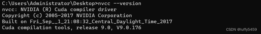 安装成功之后,可以在控制台查看nvcc 版本信息: