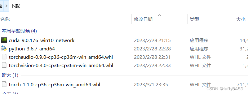 剩下安装pytorch,torchvision等库,我是下载的whl文件,然后进行pip install的方式安装的,最早通过conda来安装,一个是anaconda会安装很多无关的库,再一个就是正式安装的时候一直在solving environment \|。无法继续安装。