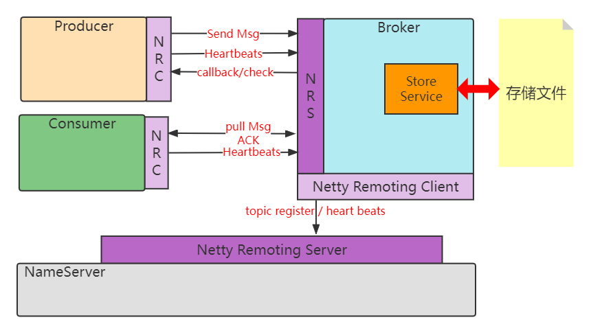 命名服务,更新和路由发现 broker服务。NameServer的作用是为消息生产者、消息消费者提供关于主题 Topic 的路由信息,NameServer除了要存储路由的基础信息,还要能够管理 Broker节点,包括路由注册、路由删除等功能。