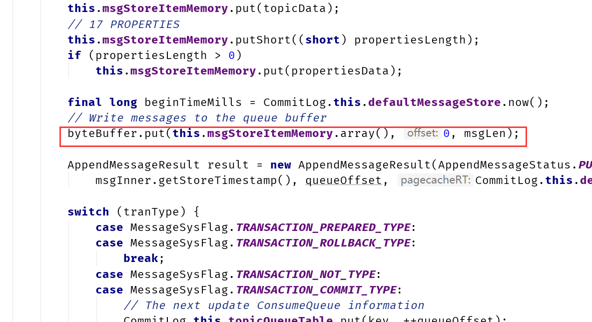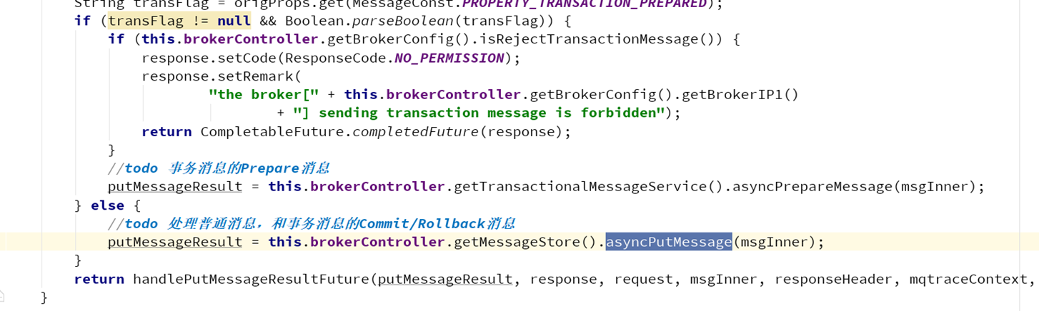 结合图同时结合代码,我们可以看到,在事务消息发送时,消息实际存储的主题是一个系统主题:RMQ_SYS_TRANS_HALF_TOPIC