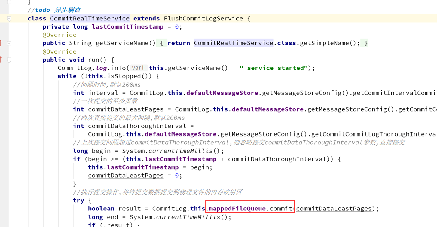 这里要注意,因为RocketMQ的推模式是基于拉模式实现的,因为拉消息是一批批拉,所以不能做到拉一批提交一次偏移量,所以这里使用定时任务进行偏移量的更新。