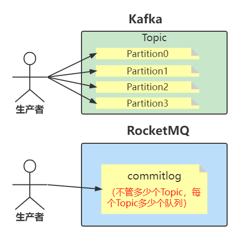 而由Producer发送消息的时候是轮询所有的Q,所以消息会平均散落在不同的Q上,可以认为Q上的消息是平均的。那么实例也就平均地消费消息了。