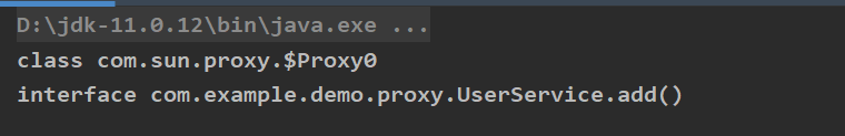 }public class Test {@SneakyThrowspublic static void main(String[] args) {UserServiceImpl target = new UserServiceImpl();Class> proxyClass = Proxy.getProxyClass(UserServiceImpl.class.getClassLoader(), UserServiceImpl.class.getInterfaces());Constructor> constructor = proxyClass.getConstructor(InvocationHandler.class);UserService userService = (UserService) constructor.newInstance(new CustomInvocationHandler(target));userService.add();}