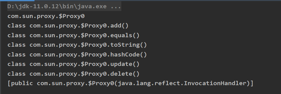 public class Test {public static void main(String[] args) {Class> proxyClass = Proxy.getProxyClass(UserServiceImpl.class.getClassLoader(), UserServiceImpl.class.getInterfaces());System.out.println(proxyClass.getName());for (Method method : proxyClass.getDeclaredMethods()) {System.out.println(method.getDeclaringClass() + "." + method.getName() + "()");}System.out.println(Arrays.toString(proxyClass.getConstructors()));}