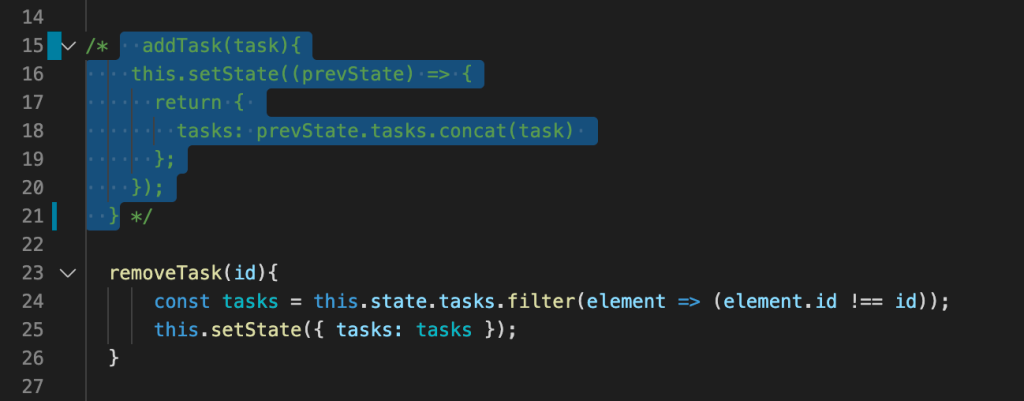 你也可以使用行注释来注释一个代码块,如果你选择代码块的所有行,并使用上述行注释的键序。这将通过给每一行添加行注释来注释/取消注释所选的代码块。