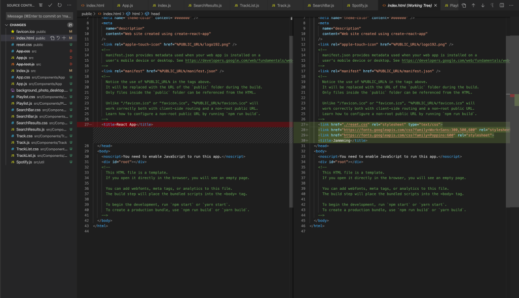 在活动栏中点击 Source Control 按钮并选择文件以查看差异。