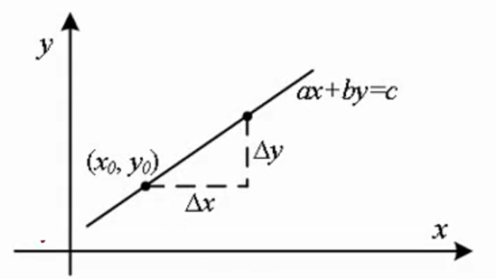说明: x值按b/d递增,y值按- a/d递增。设(x_0,y_0)是一个格点(格点是指x、y坐标均为整数的点),移动到直线上另一个点(x_0+\Delta x,y_0+\Delta y),有a\Delta x+b\Delta y=0。△x和Ay必须是整数,(x_0+\Delta x,y_0+\Delta y)才是另一个格点。