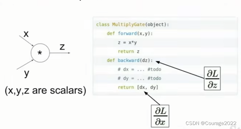 这些值,在反向计算使用链式法则将上游梯度的值使用其他分支的值对它进行量化并保持计算