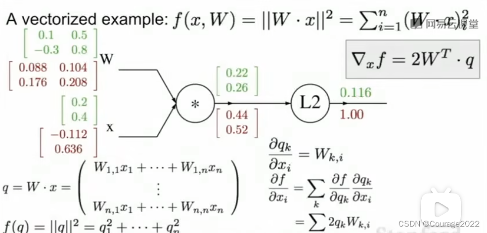 这时整个计算流程还是一样的,唯一的区别在于我们刚才的梯度变成了雅克比矩阵。所以现在是一个包含了每个变量里各元素导数的矩阵,比如