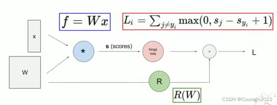 这篇博客将讲述如何计算任意复杂函数的解析梯度,需要利用到一个叫做计算图的框架。大体上来说,计算图就是我们用这类图表示任意函数,其中图的节点表示我们要执行的每一步计算,如下图的线性分类器: