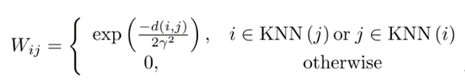 :确定k-NN图。基于RBF核的亲和力矩阵W的计算方法如下: