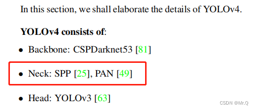 yolov4网络结构可分为以下三部分。其中backbone和neck不同,head是一样的。