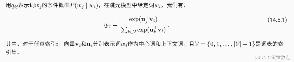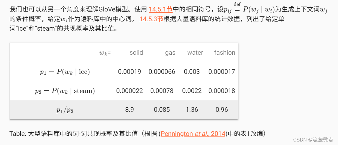 上下文窗口内的词共现可以携带丰富的语义信息。例如,在一个大型语料库中,“固体”比“气体”更有可能与“冰”共现,但“气体”一词与“蒸汽”的共现频率可能比与“冰”的共现频率更高。此外,可以预先计算此类共现的全局语料库统计数据:这可以提高训练效率。为了利用整个语料库中的统计信息进行词嵌入,让我们首先回顾 预训练——词嵌入(word2vec)、 近似训练_流萤数点的博客-CSDN博客中的跳元模型,但是使用全局语料库统计(如共现计数)来解释它。