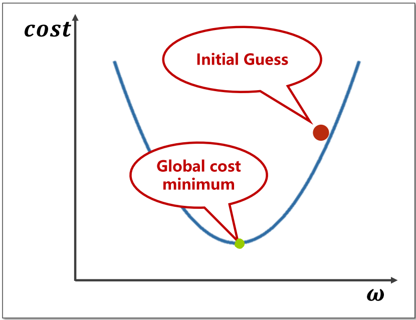 假设我们目前的起始位于上图红色点,为了找到最优