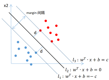 接着上面的分类问题来分析,假设支持向量机最终要找的线是 ,决策边界两条线是