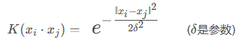 以上核函数叫做多项式核函数,常用的核函数有如下几种,不同的核函数的区别是将向量映射到高维空间时采用的升维方法不同,不过高维向量都是不需要计算出来的。