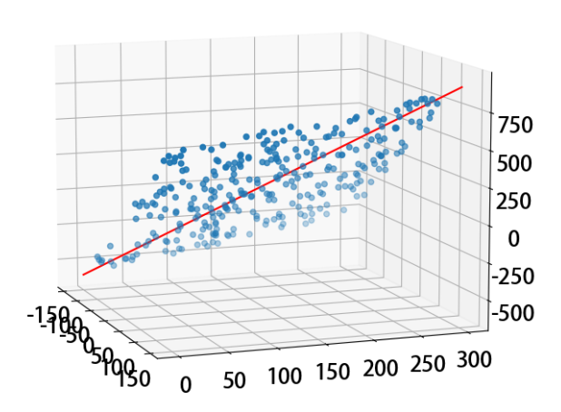 y = x1 * w[0] + x2 * w[1] + b + np.random.randn(300,1)