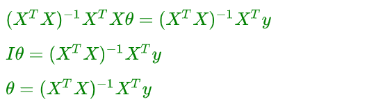 \theta = (X^TX)^{-1}X^Ty 或者 {\color{Red} W = (X^TX)^{-1}X^Ty} ,其中的W\theta 即使方程的解!