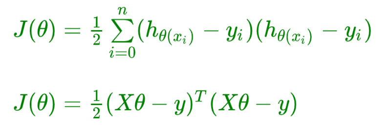 {\color{Red} J(\theta) = \frac{1}{2}\sum\limits_{i = 0}^n(h_{\theta}(x_i) - y_i)^2}